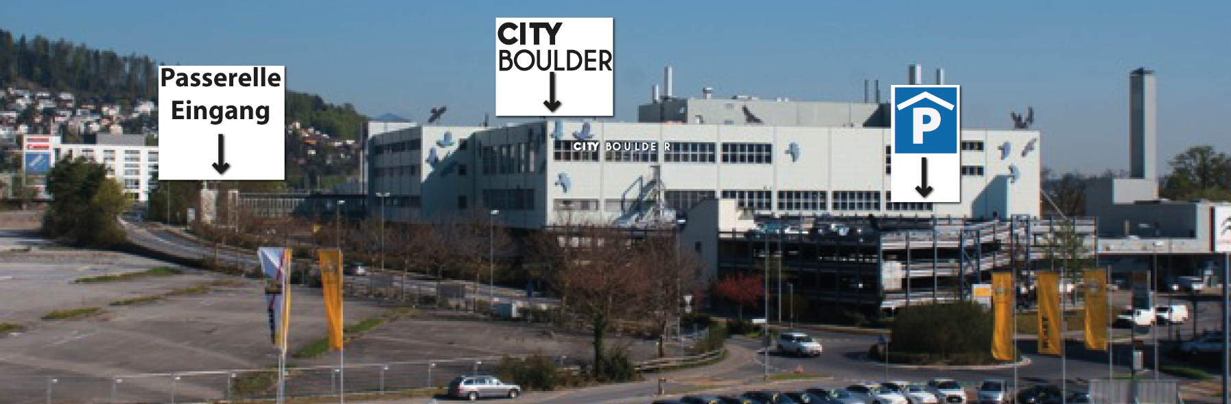Bei der Passerelle den Lift oder das Treppenhaus benutzen. Die Passerelle überqueren und im Gebäude via Lift/Treppe in den zweiten Stock gelangen. Dann weiter den Beschriftungen bis in die Boulderanlage folgen.