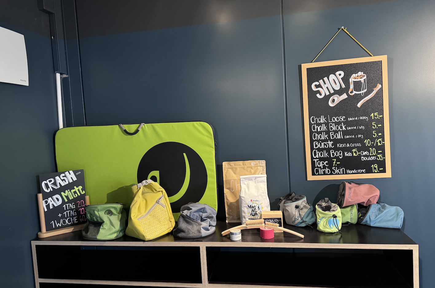 Du hast mal wieder Tape oder Chalk vergessen oder aufgebraucht? Kein Problem, wir haben alle Verbrauchsmaterialien da.